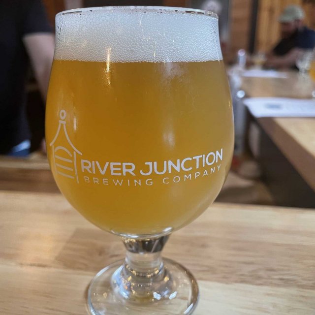 Flagship IPA of River Junction Brewing Company. Gold-orange haze, cloud white head. Golden Promise malt backbone carries hop notes of ripe fruit with a mildly present bitterness.